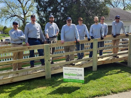 Indianapolis staff recently volunteered with NeighborLink Indianapolis to provide free repairs and build a temporary accessibility ramp for an elderly homeowner. She has lived in her home for fifty-five years and needed a wheelchair ramp for mobility to continue living comfortably in her home after a recent stroke.