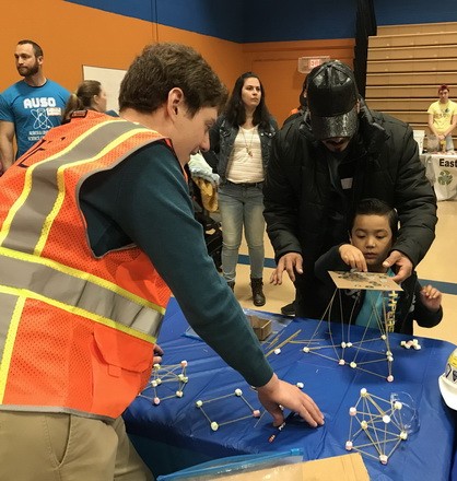 WJE staff recently volunteered at an ASCE-sponsored STEM event and presented to students at Chicago-area middle schools. Students had the opportunity to learn more about engineering careers and participate in hands-on engineering and building activities. Several outside groups and organizations, including WJE, took part in fostering students' interest in STEM fields and giving them examples of experiments and activities they can do at home.