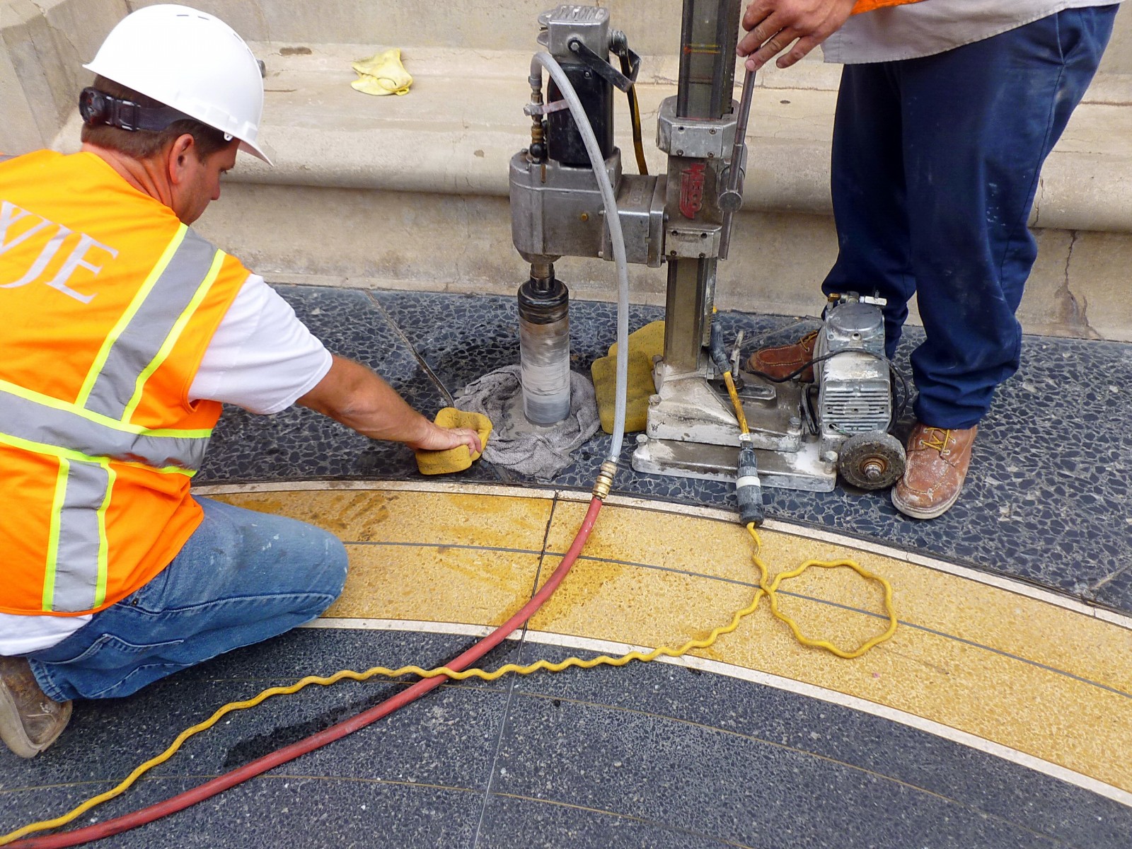 WJE was retained by the U. S. Department of the Interior, Bureau of Reclamation, Lower Colorado Region to document current conditions, determine the causes of deterioration, and provide recommendations for preservation of the Monument Plaza site, including the extensive unbonded, bonded, and precast terrazzo of the plaza and terrestrial compass as well as the brass features, figural sculptures, flagpole, and granite base.