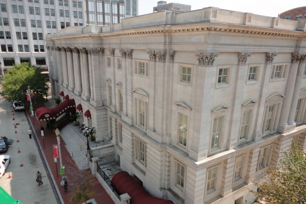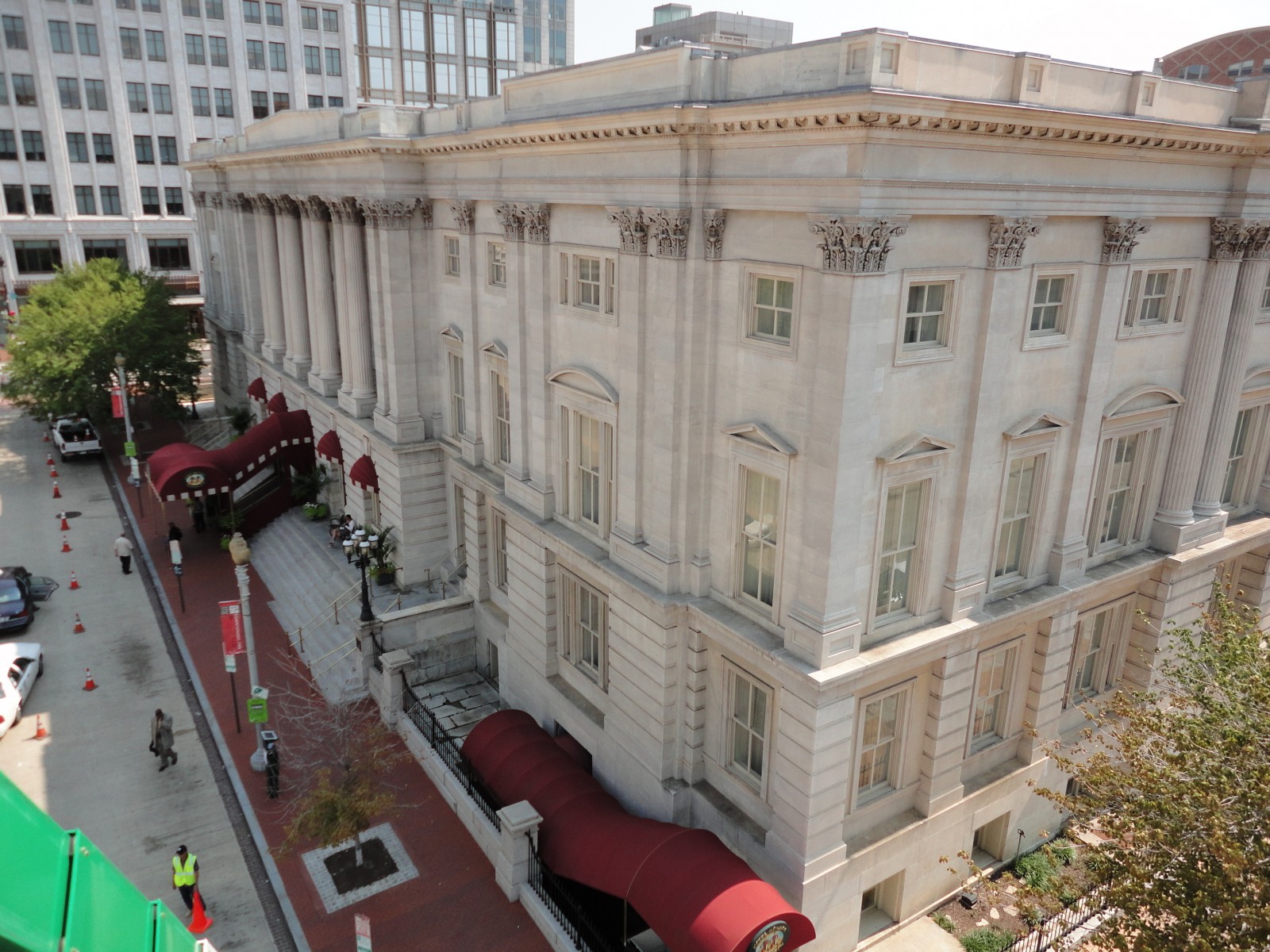 The original Hotel Monaco building, designed by Robert Mills (architect of the Washington Monument), was constructed between 1839 and 1844; an addition, designed by Thomas Walter (Architect of the U.S. Capitol), was built between 1855 and 1866. It served as the General Post Office until 1897, then the Tariff Commissions Building from 1921 until recently, when it was converted to a hotel after a period of abandonment. Standing four stories tall and occupying an entire city block, it was the first all marble building in the District of Columbia. It was registered as a National Historic Landmark in 1972.