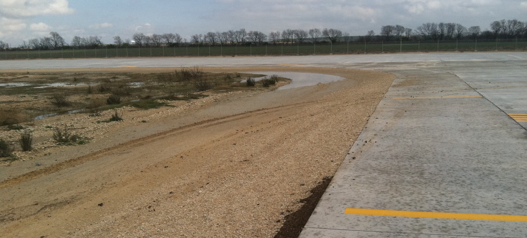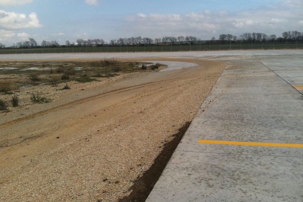 The existing in situ soils were stabilized and compacted. A base course of crushed limestone was added to provide a drainage layer. As a cost-savings effort, the widths of the runway shoulders were reduced to 12-1/2 feet prior to construction. WJE provided construction administration services for the construction of these improvements. The total construction cost for this project was $1.5 million.