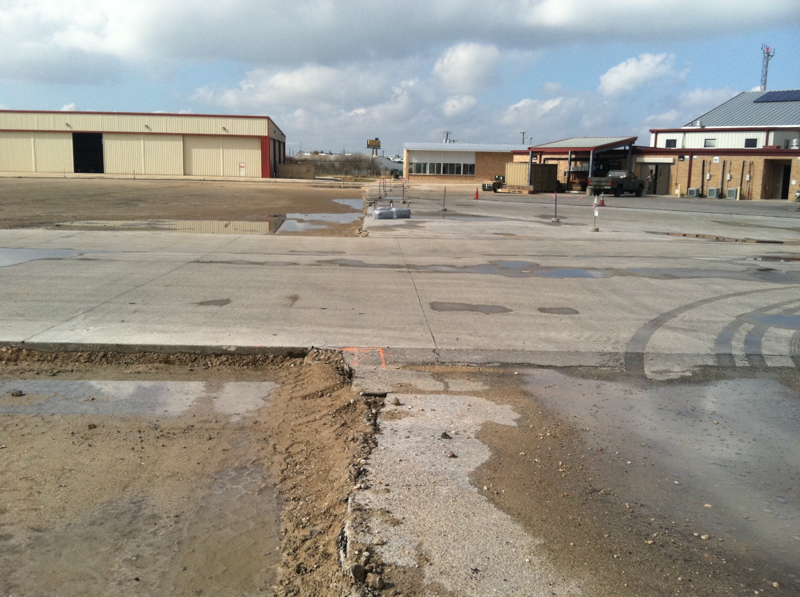 The existing pavement on the north side of the Martindale Texas Army National Guard airfield apron consisted of 187,000 square feet of approximately 1-1/2-inch-thick asphalt. The north side of the apron was positioned between sections of existing concrete taxiway.