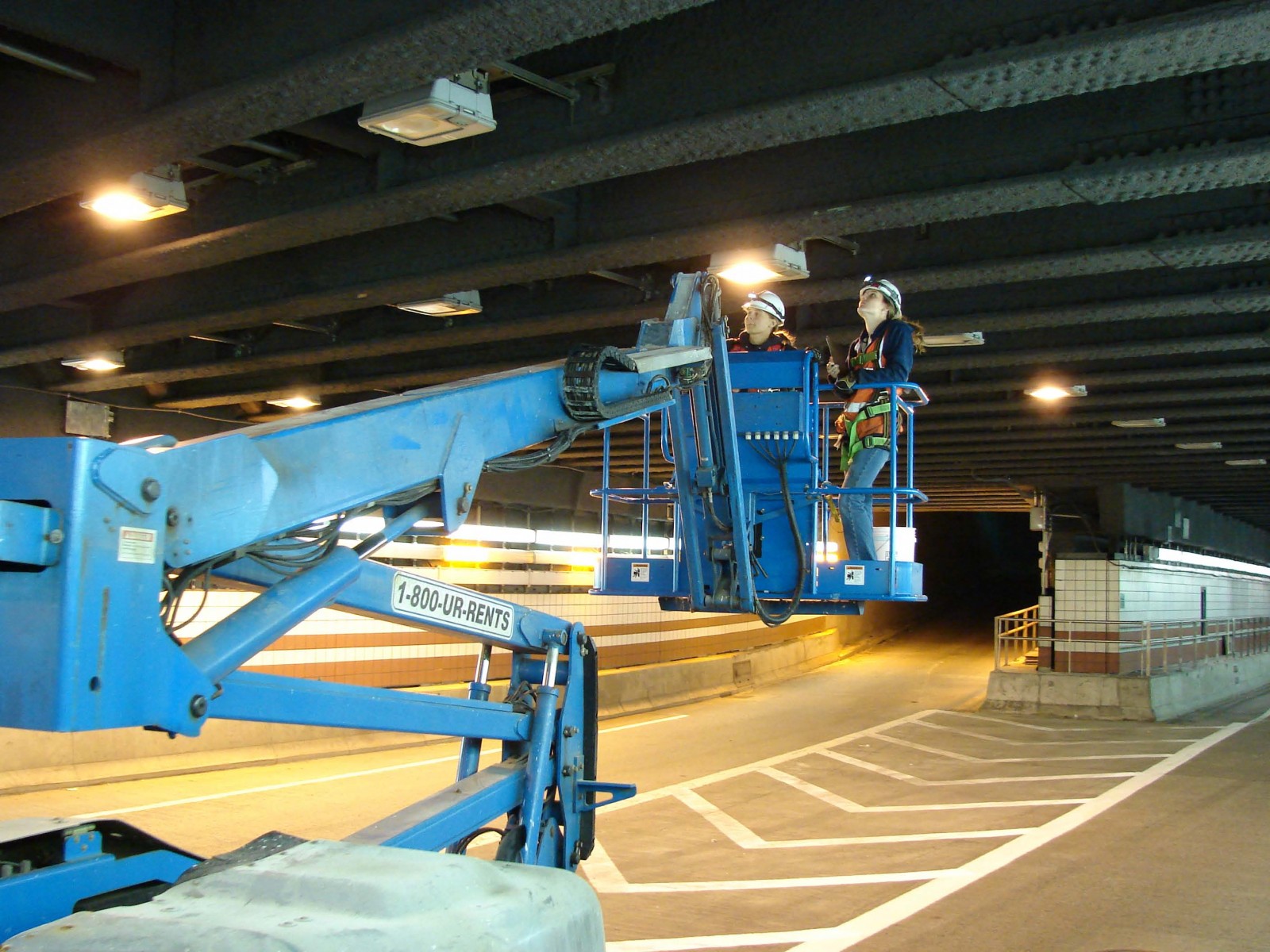 Phase I of the project consisted of a review of the Big Dig tunnel structures and finishes, including precast and cast-in-place concrete and steel-framed tunnel structures, precast concrete and metal ceiling panels, tile wall finishes, epoxied anchors, and appurtenances. WJE's work included extensive field investigations, consisting of visual inspections and nondestructive testing, with subsequent finite element analyses of critical components.