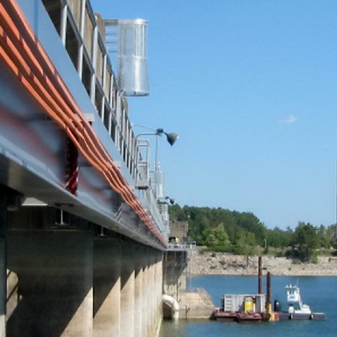 The construction of the Norfork Dam on the North Fork River in the 1940s created Norfork Lake in northern Arkansas. The dam, which is operated by the U.S. Army Corps of Engineers, utilizes twelve spillways to control the flow of water into the North Fork. In 2009, a large steel bulkhead, which controls water flow through the spillway during periods of maintenance, was designed. The 140,000-pound moveable bulkhead was designed to be mounted to existing pier caps in the spillways utilizing high-capacity, deep-embedment post-installed concrete anchors.