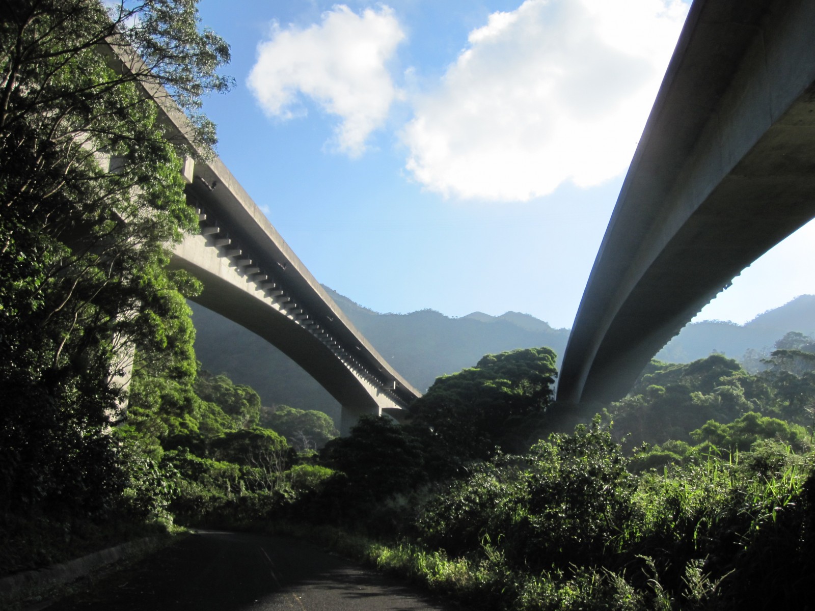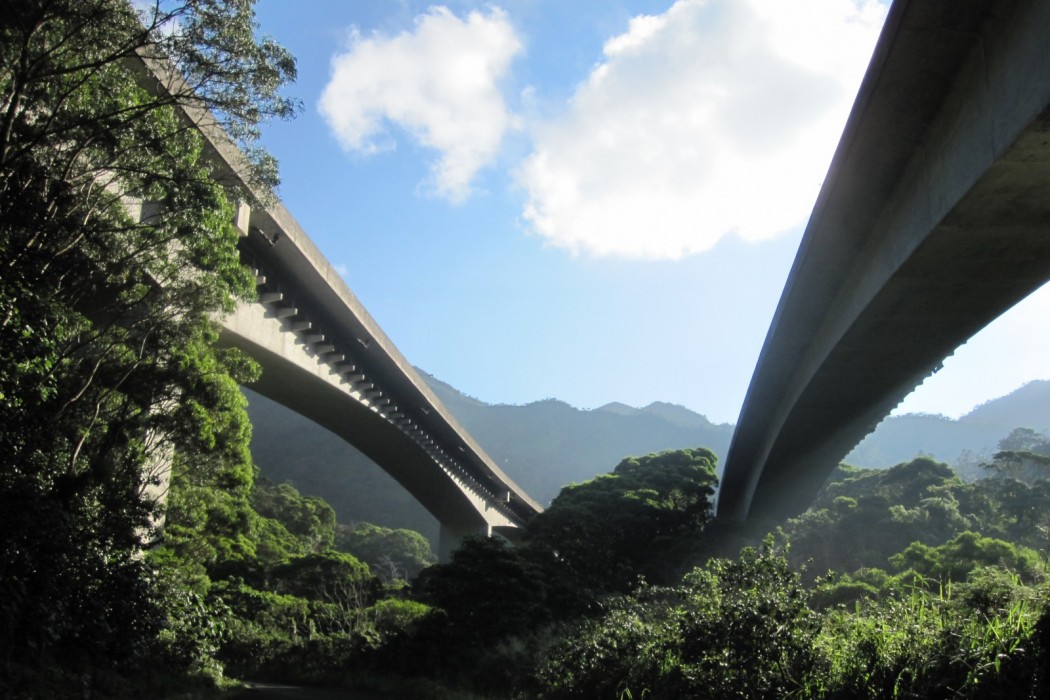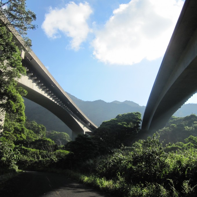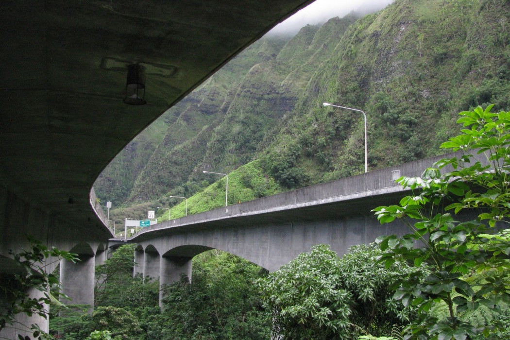 Interstate H-3 runs east to west across the island of Oahu, meandering through the lush windward mountains between Honolulu and the Kaneohe Marine Corps Base. The 15-mile scenic interstate highway includes four multispan bridges with a combined length of over 3 miles, containing 2 million feet of post-tensioning, draped profile tendons.