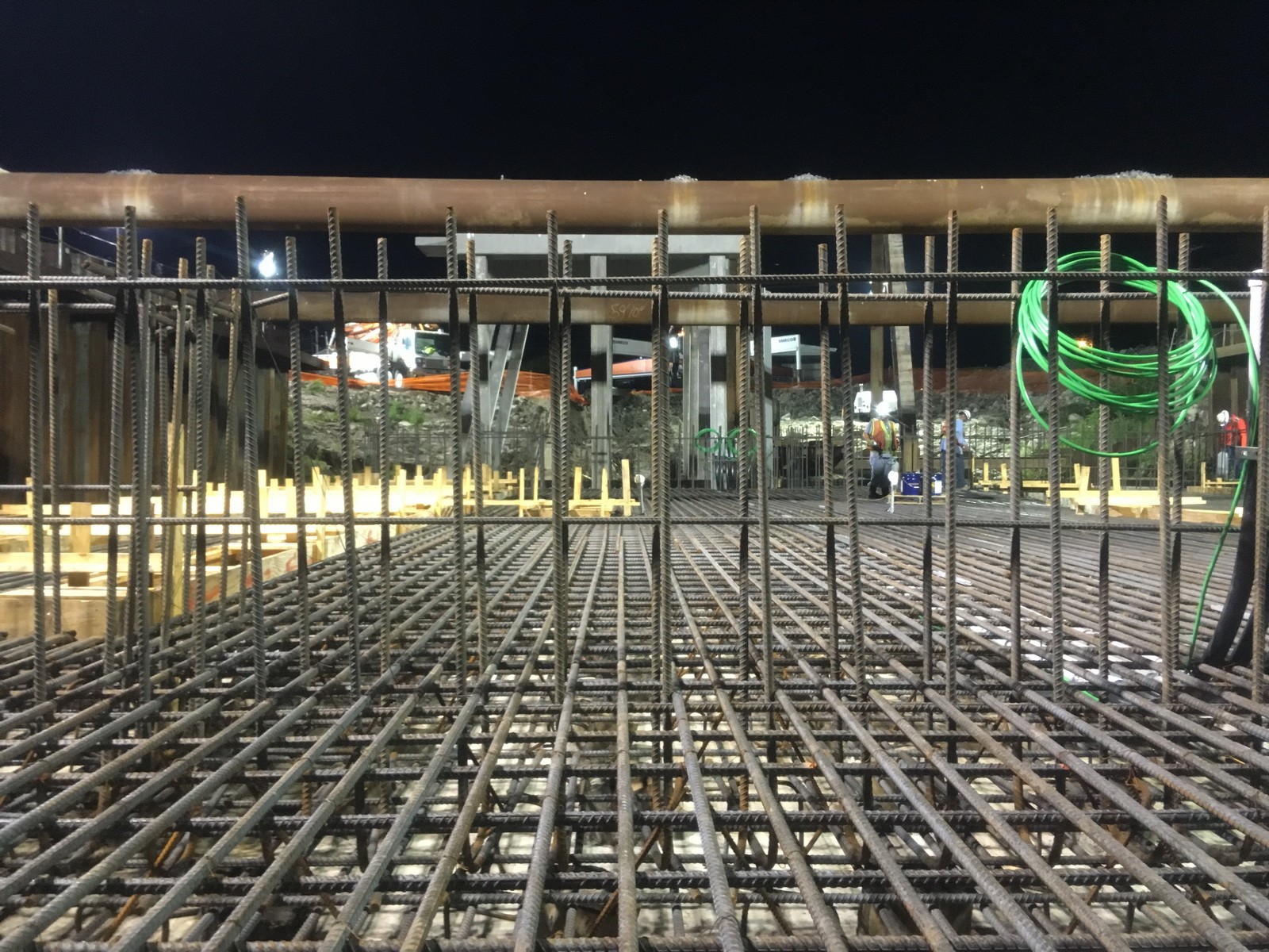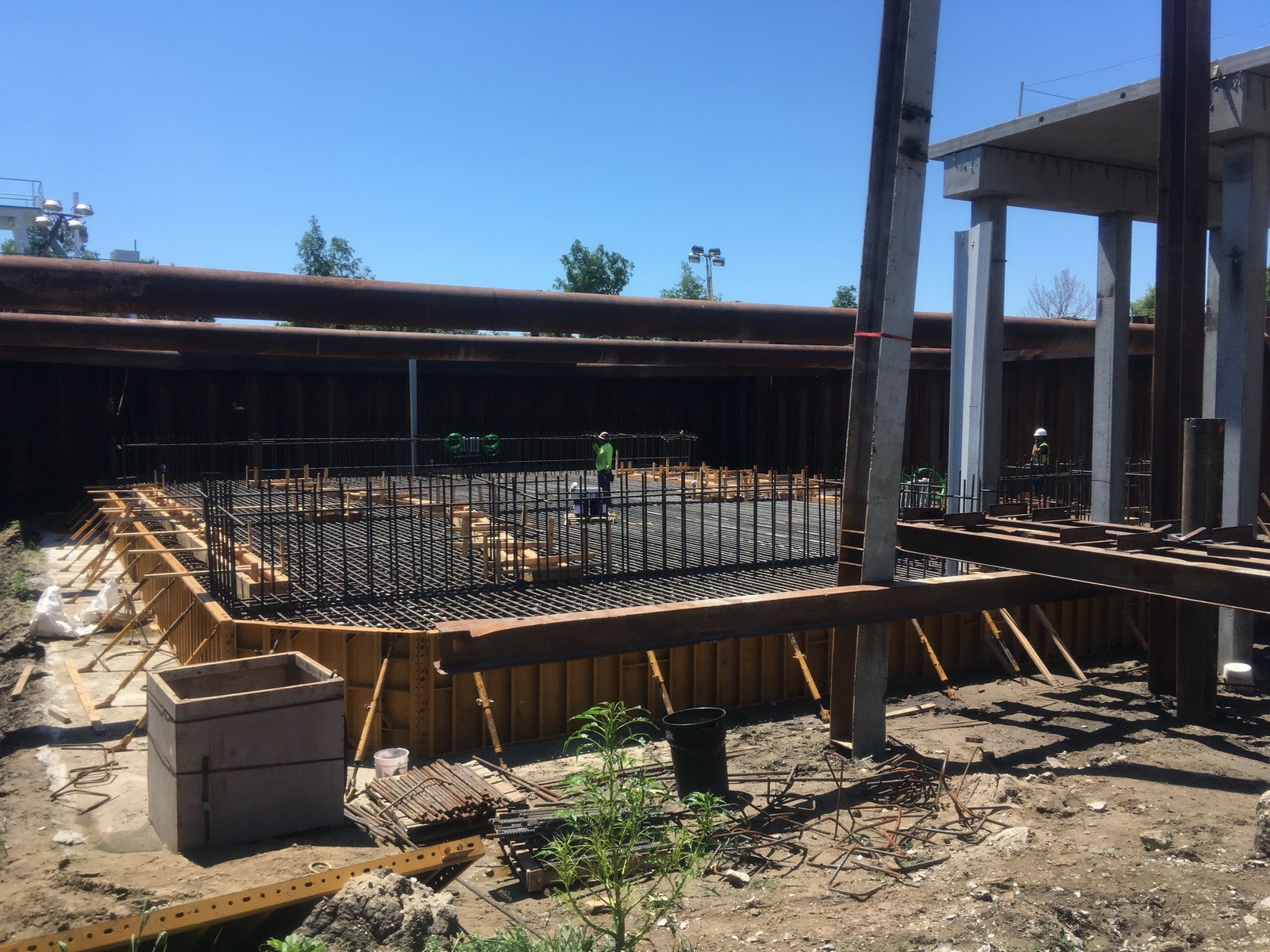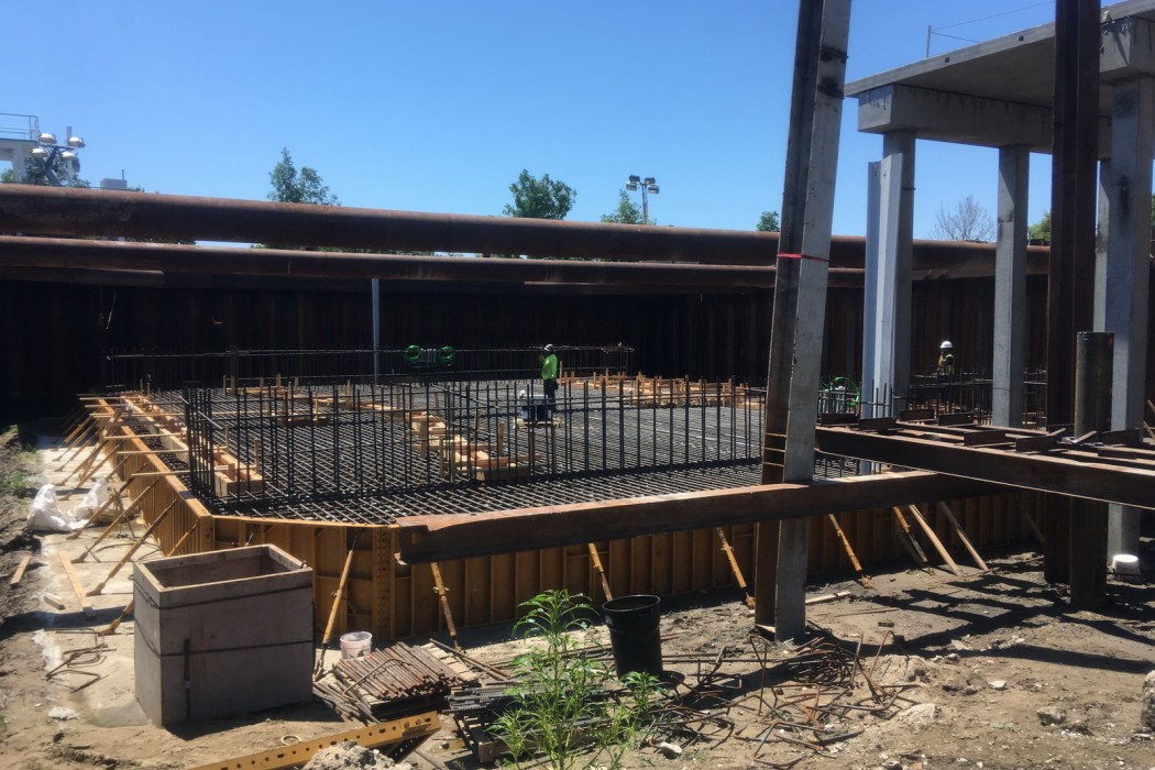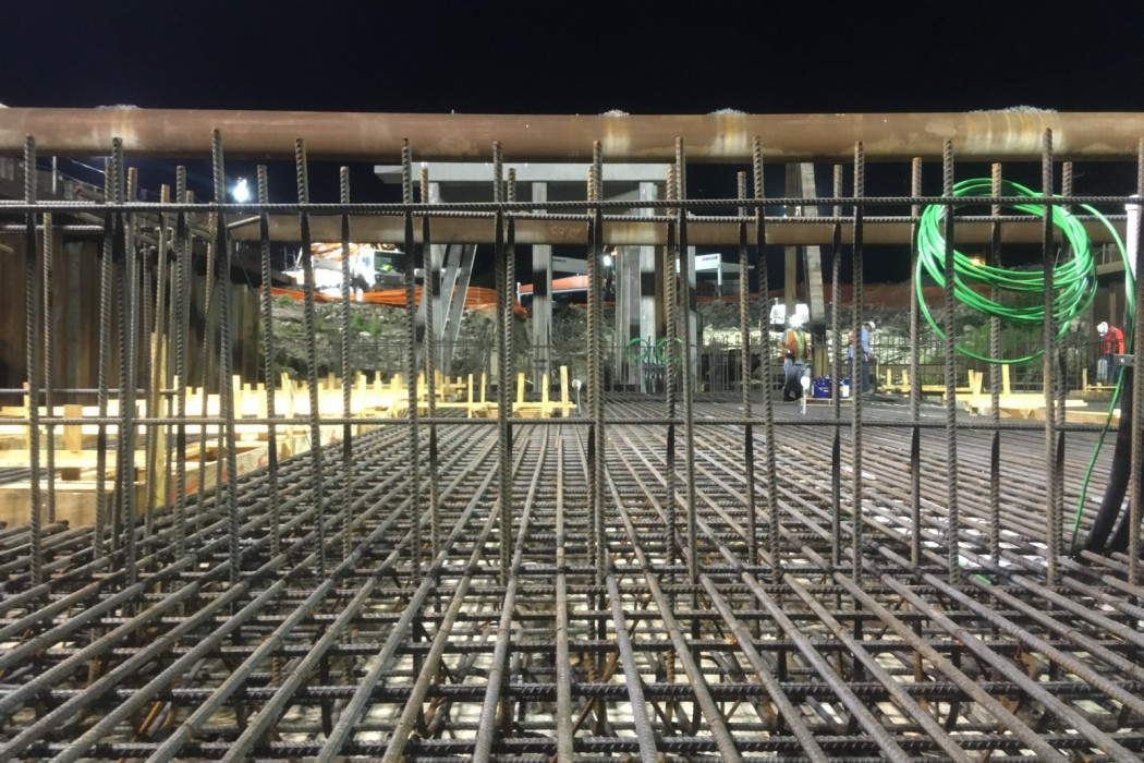 Using thermal analysis software, WJE modeled the temperature development due to the heat of cement hydration to predict the temperature differential between the concrete core and concrete surface. Using the results of the thermal analysis, WJE developed a mass concrete thermal control plan to reduce the risk of thermal cracking. The plan included guidelines for precooling methods, concrete placement temperature, insulation application, and installation of temperature sensors. The mass concrete thermal control plan provided by WJE was able to successfully limit the maximum core temperature and temperature differentials of the mass concrete slab.