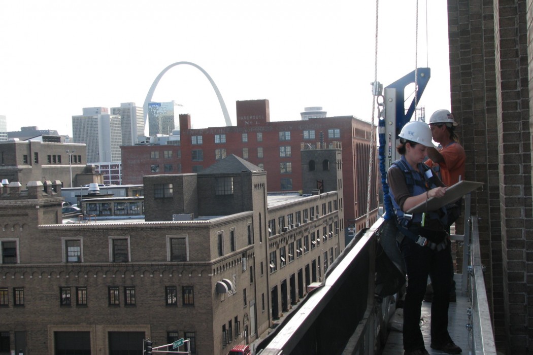 WJE determined that the RAY building required fairly extensive masonry facade repairs to mitigate severely distressed conditions and to restore the facade to a serviceable condition. It was determined that the existing windows required replacement to meet the energy and blast requirements set by the GSA. With these factors in mind, WJE and Team 4/Saur Architects designed repairs to the exterior facade based on the observed level of distress. The repair design followed the "GSA Historic Preservation Technical Procedures" and The Secretary of the Interior's Standards for Treatment of Historic Properties.