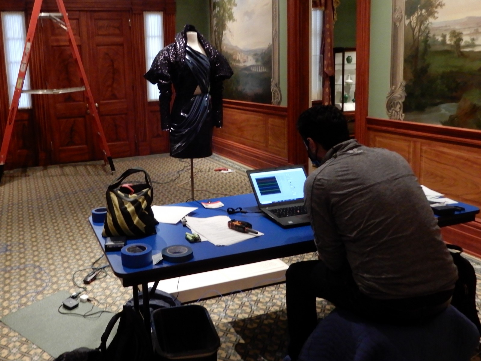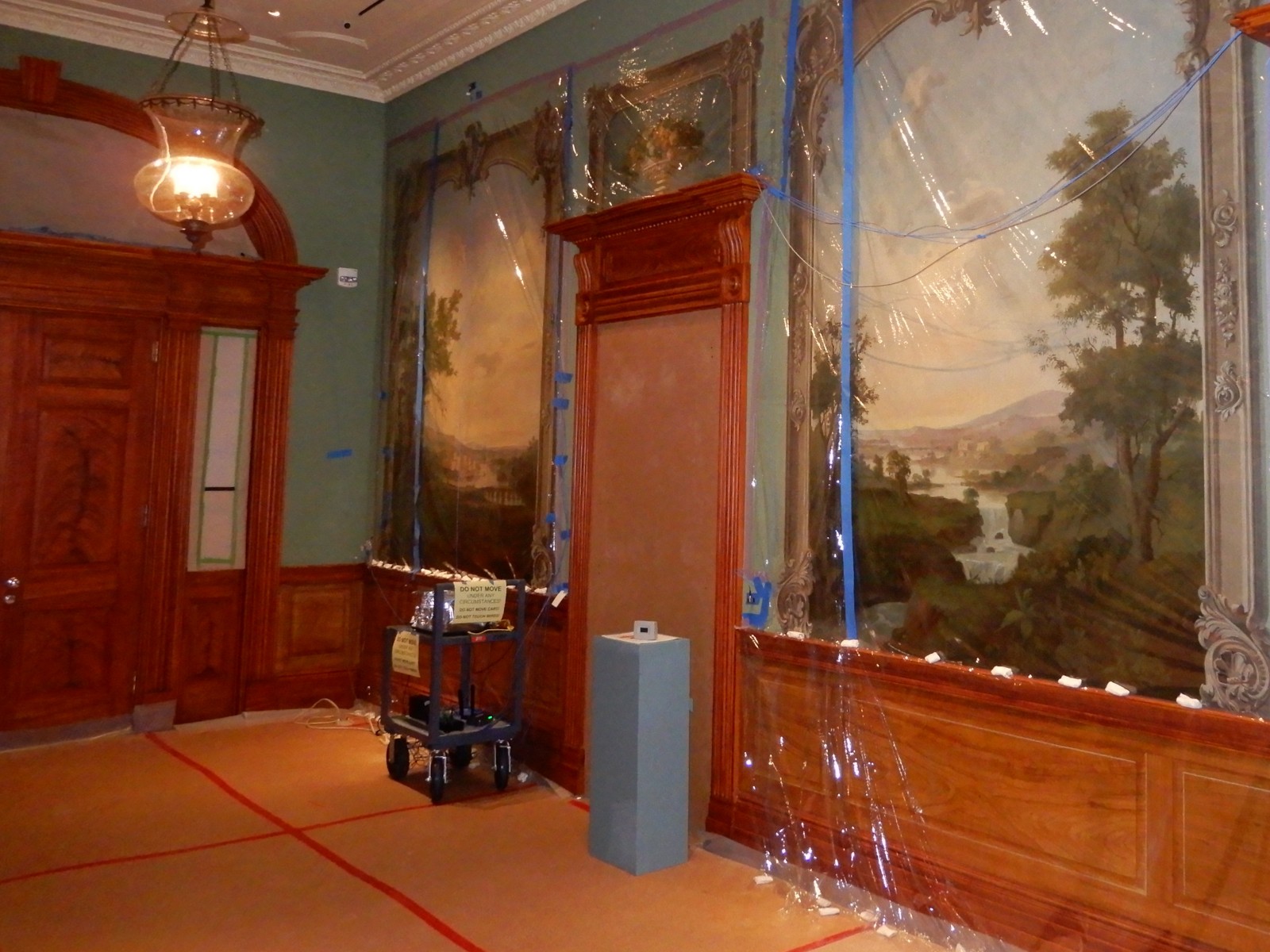 Before construction to the museum building itself, we performed extensive vibration testing in and around the mural gallery to estimate potential vibration levels at the murals. We conducted mock construction activities in the mural gallery, in the attic above the mural gallery, and at exterior walls adjacent to the mural gallery to measure vibrations at the boundaries of the murals. Using that data, we developed a vibration control specification and contractor guidance document. During construction, we monitored vibrations around the murals, as well as strain in the plaster finishes across the murals, using a custom system of accelerometers and strain gages. The system provided immediate notifications of any above-threshold levels throughout the construction.