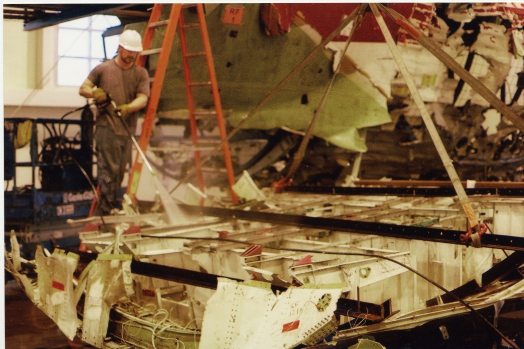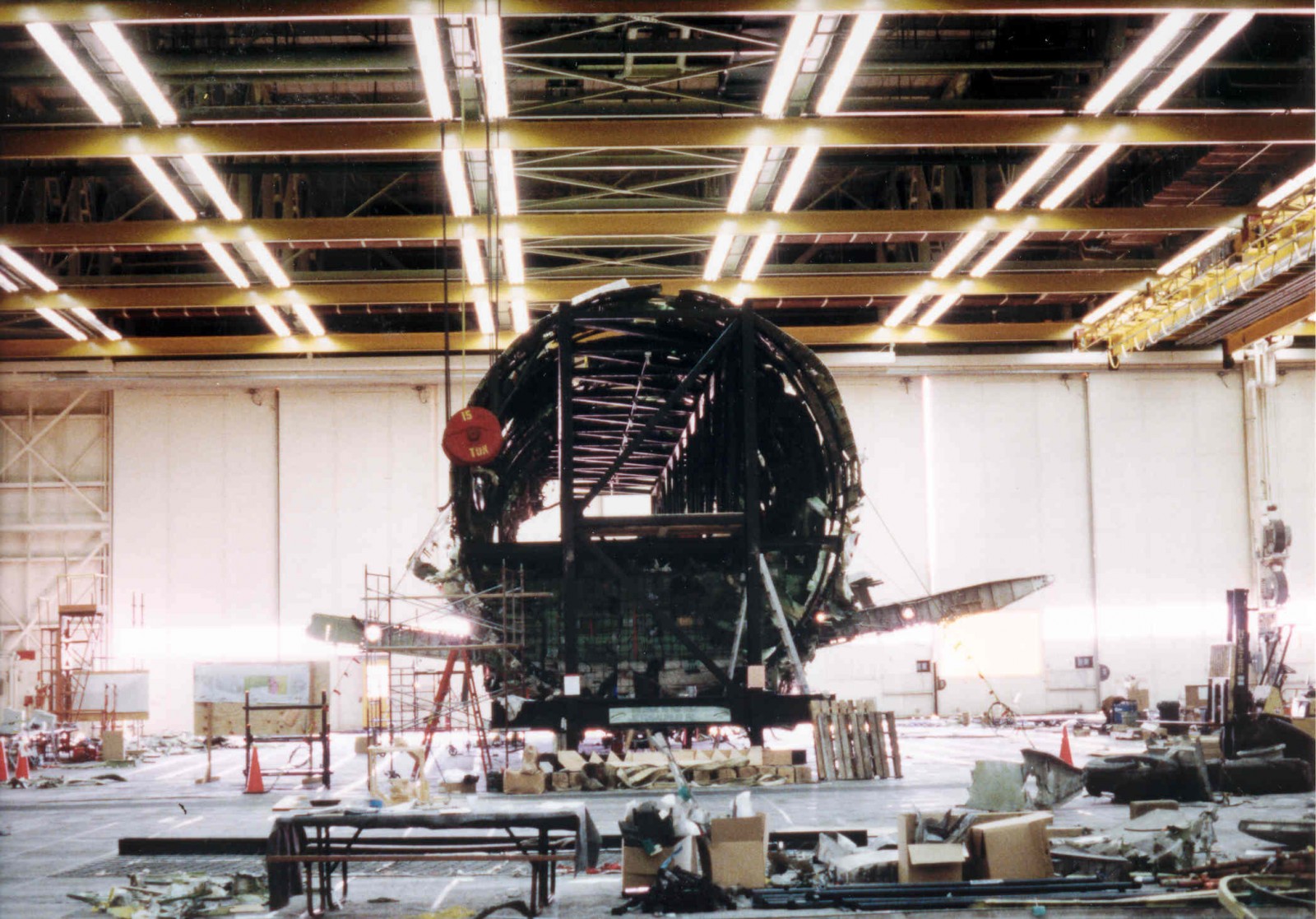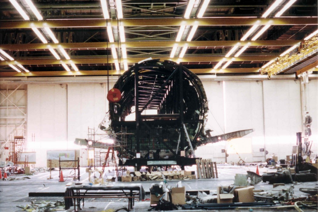 The NTSB objective was to reassemble the recovered pieces of the plane's fuselage, as well as the main fuel cell, keel beam, cargo areas, and pressure deck, in a manner that permitted viewing of the reassembled surfaces and installation of the passenger seating in the reconstruction. In addition, it was essential that the reassembled aircraft structure could be rolled out of the hangar after completion. Additionally challenging, the reconstruction had to be completed under a very rigid schedule of just over four months.