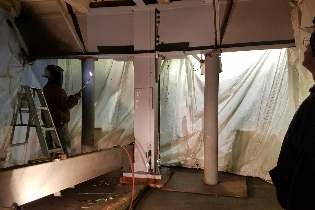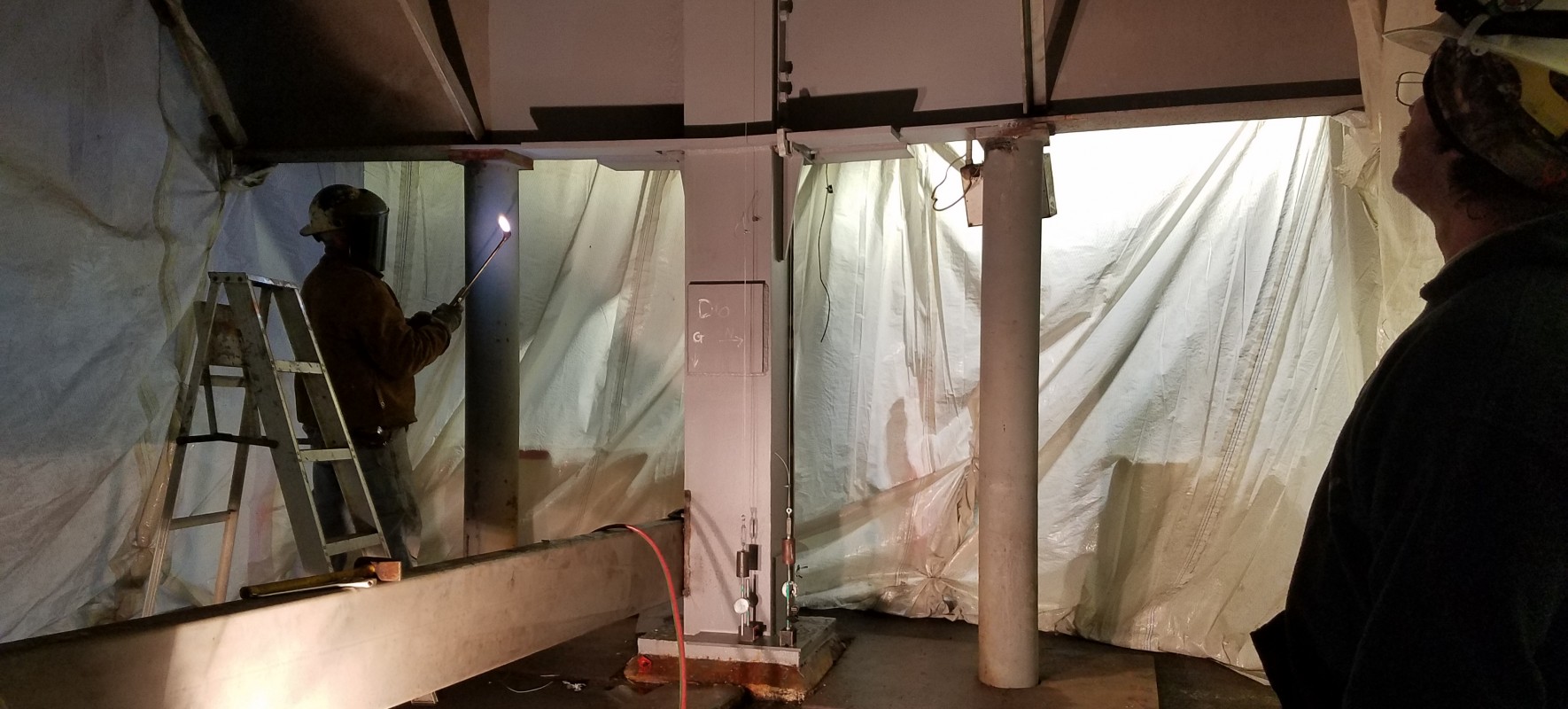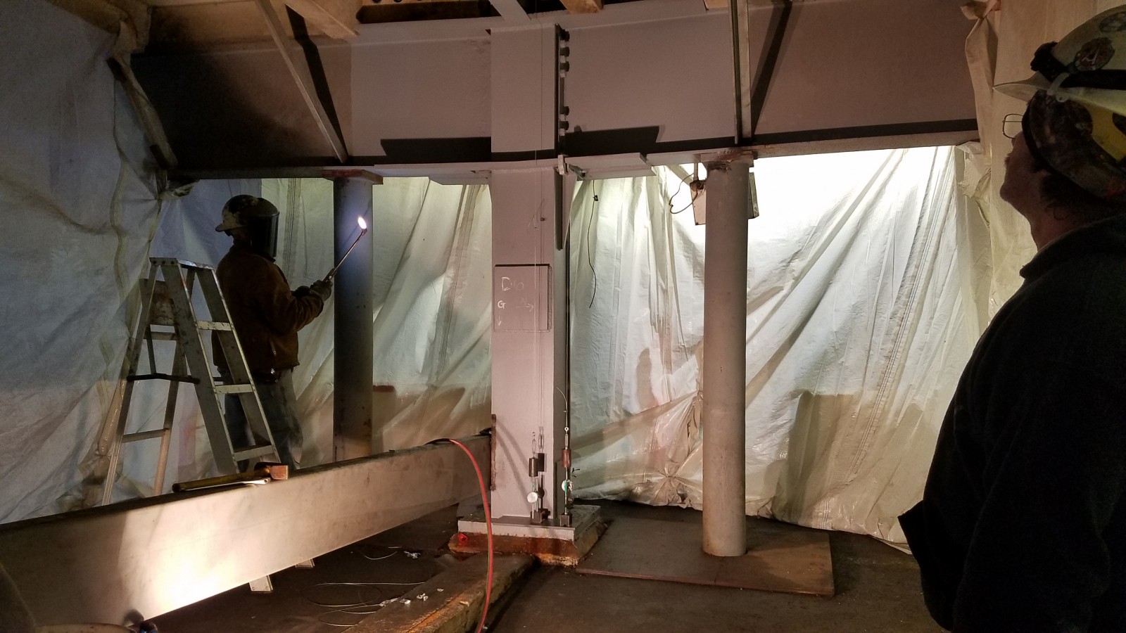 WJE began with a comprehensive assessment of the garage, including section loss measurements and a multiyear plumbness survey. During probing, we discovered steel columns with nearly 100 percent section loss.