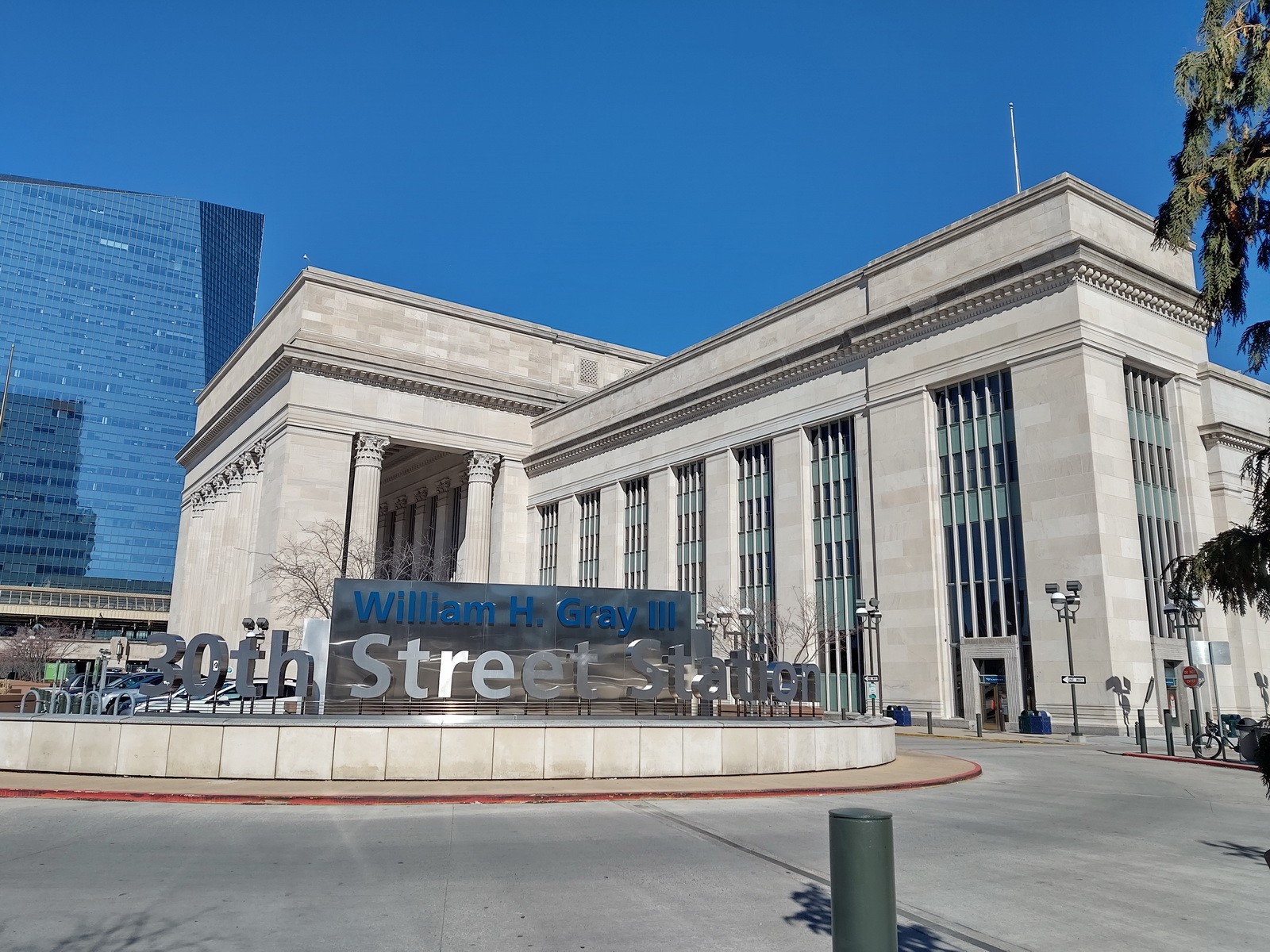 Completed in 1934, the station was designed by Chicago architecture firm Graham, Anderson, Probst & White and once served as the headquarters of the Pennsylvania Railroad Company. The facades of the building are clad with Alabama limestone that sits atop a horizontal base of pink granite. Curtain walls with cast-iron mullions and steel-framed windows punctuate the limestone facade and original bronze doors provide access to the five-story, travertine-clad concourse. Two internal light courts are clad in buff-colored brick with prism glass windows allowing natural light into the concourse.